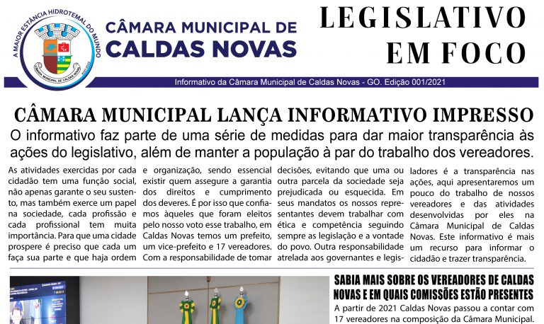 O informativo faz parte de uma série de medidas para dar maior transparência às ações do legislativo, além de manter a população à par do trabalho dos vereadores. As atividades exercidas por cada cidadão tem uma função social, não apenas garante o seu sustento, mas também exerce um papel na sociedade, cada profissão e cada profissional tem muita importância. Para que uma cidade prospere é preciso que cada um faça sua parte e que haja ordem e organização, sendo essencial