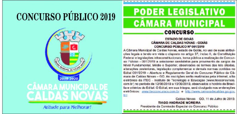 A Câmara Municipal por meio de seu Presidente vereador Geraldo Pimenta anuncia que o órgão irá realizar concurso público para preenchimento de vagas no segundo semestre de 2019. Serão 7 vagas para chamamento imediato e mais 15 para cadastro de reserva. Sendo estas para os cargos de agente administrativo, auxiliar de serviços gerais, procurador jurídico, secretário e vigilante. O ITEC – Instituto Tecnológico de Educação e Ciências irá conduzir o processo seletivo, a empresa já realizou concursos em diversas cidades
