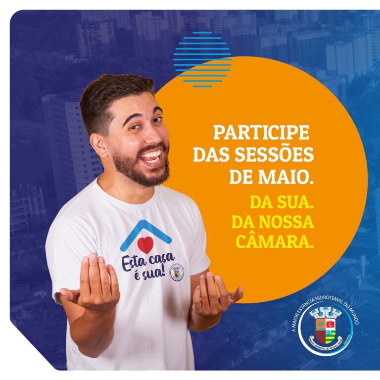 A Câmara Municipal de Caldas Novas convida toda população para as duas próximas sessões ordinárias que acontecerão nos dias 17 e 18 de maio de 2022. As sessões se iniciam as 09 horas e são transmitidas aos vivo pela TVCâmara. Acesse nossos canais oficiais: | www.camaradecaldas.go.gov | facebook.com/camaradecaldas | instagram.com/camaradecaldas Texto: Marlus Alberto – Relações Públicas da Câmara Municipal de Caldas Novas.