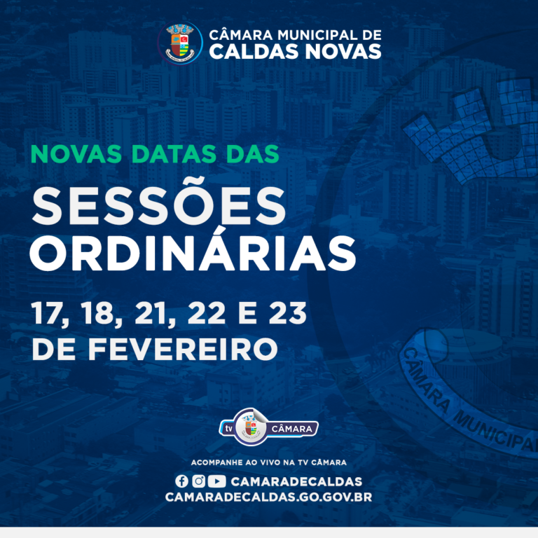 As sessões ordinárias de fevereiro da Câmara Municipal de Caldas Novas previstas para serem realizadas a partir do dia 16 de fevereiro foram remarcadas diante do falecimento do Secretário de Obras e ex-vereador Achiles Gonzaga. O presidente, demais vereadores e servidores desta casa expressam seu extremo pesar a família e amigos do Sr. Achiles. A Câmara Municipal, através do presidente Marinho Câmara, publicou o Ato 002/2022, declarando luto oficial e remarcando a 1ª Sessão Ordinária de fevereiro para o dia